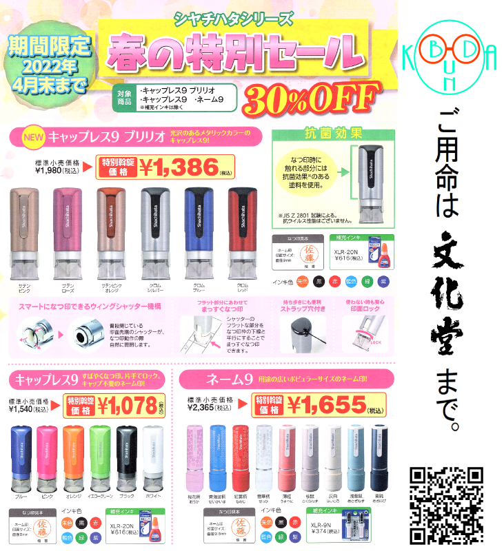 2022年02月15日 春のシヤチハタ特別セール開催中 春の特別セール開催中です!この機会に是非ご注文下さい。FAX注文書ダウンロード 「印鑑」カテゴリの最新記事 < 前の記事次の記事 > コメント コメントフォーム 名前 コメント 評価する リセット リセット 顔 星 投稿する 情報を記憶